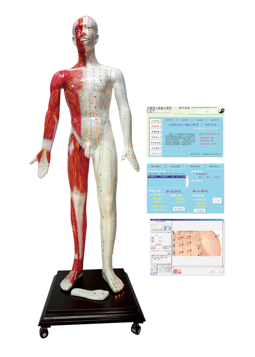 多媒體人體針灸穴位發(fā)光模型... 該系統(tǒng)融計(jì)算機(jī)技術(shù)、電子控制技術(shù)、多媒體技術(shù)、腧穴理論于一體;聲音、屏幕、人體模型同步控制筋絡(luò)腧穴的信息;顯示十二經(jīng)脈循環(huán)流注,經(jīng)脈絡(luò)屬表理對(duì)經(jīng)關(guān)系,特定穴的分布;加之屏幕表層、淺層、深層穴位解剖圖的配合,常見病的辯施治,隨證選穴的查詢及處理輸出,使學(xué)員對(duì)人體經(jīng)絡(luò)腧穴信息有更全方位的了解,更有利于加深印象與理解掌握;同時(shí),亦可用于臨床與科研參考。